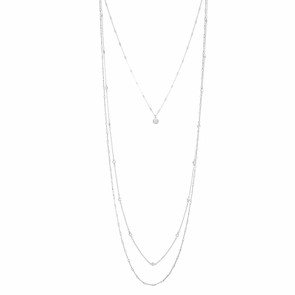 With its variety of chain styles and sparkly simulated crystal pendant, this multi-strand Nine West necklace is sure to be an excellent addition to any jewelry collection.