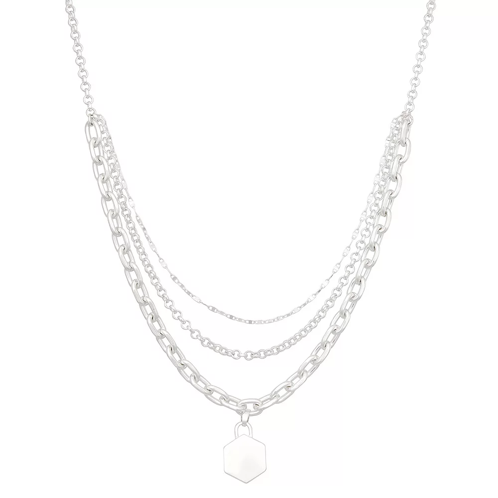 You will love the layered look of this Nine West three row hexagon pendant necklace.